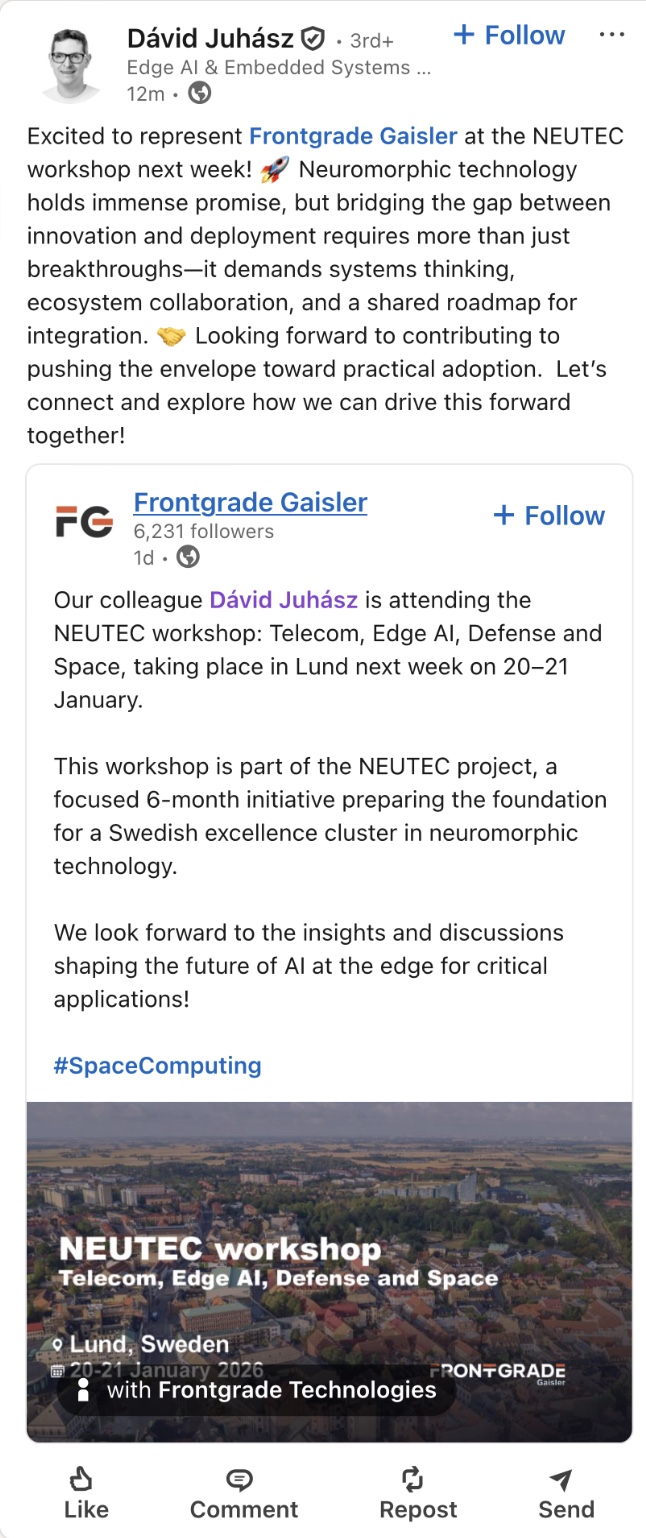 In his LinkedIn profile and on his personal website, Dávid Juhász shares some details about his work with Akida since joining Frontgrade Gaisler in June 2025: