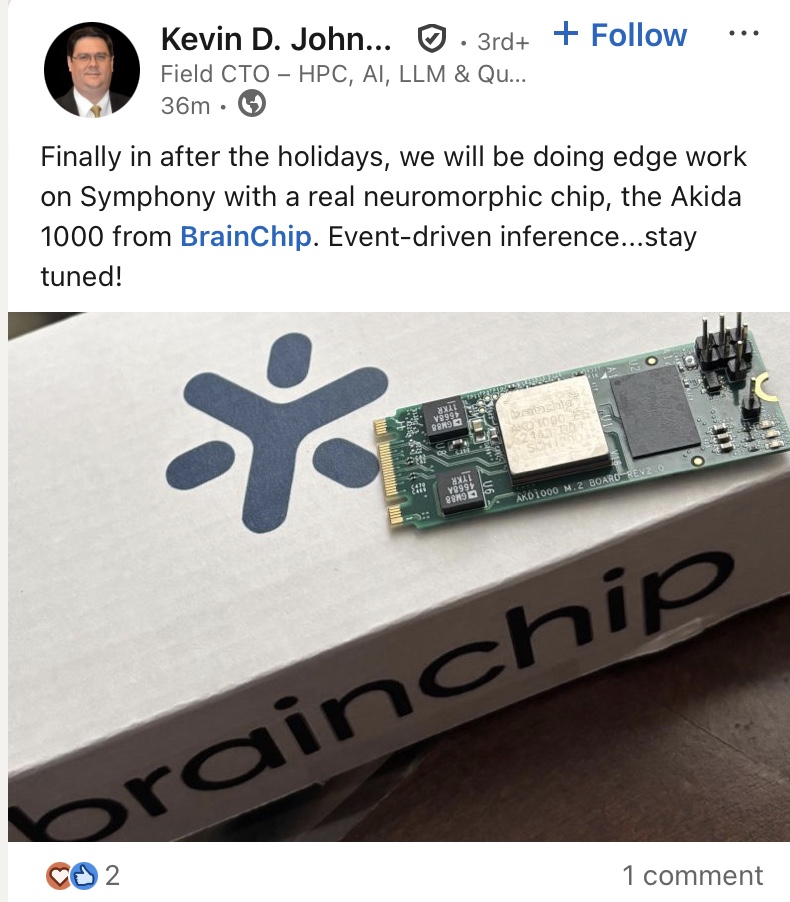 Parsons is a Fortune 500 defence contractor with deep ties to the US military and intelligence agencies. Their commitment to BrainChip’s technology validates the Akida platform’s relevance in defence applications where low power and edge processing are essential.