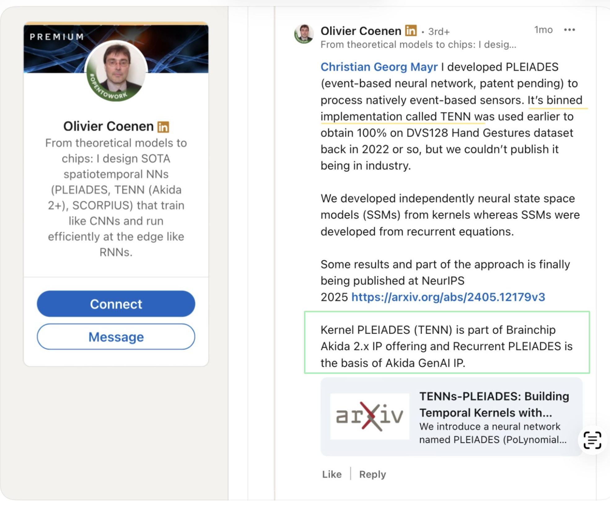 Talk about morphic resonance. I just posted about the change from a packet-switched mesh to a silicon-switched mesh in Akida 3, and here's JT talking about the packet overhead. The navigation/timing data takes many more bits than the spike information ... and that means power and time. So Akida 3 is much more efficient than Akida 2.
