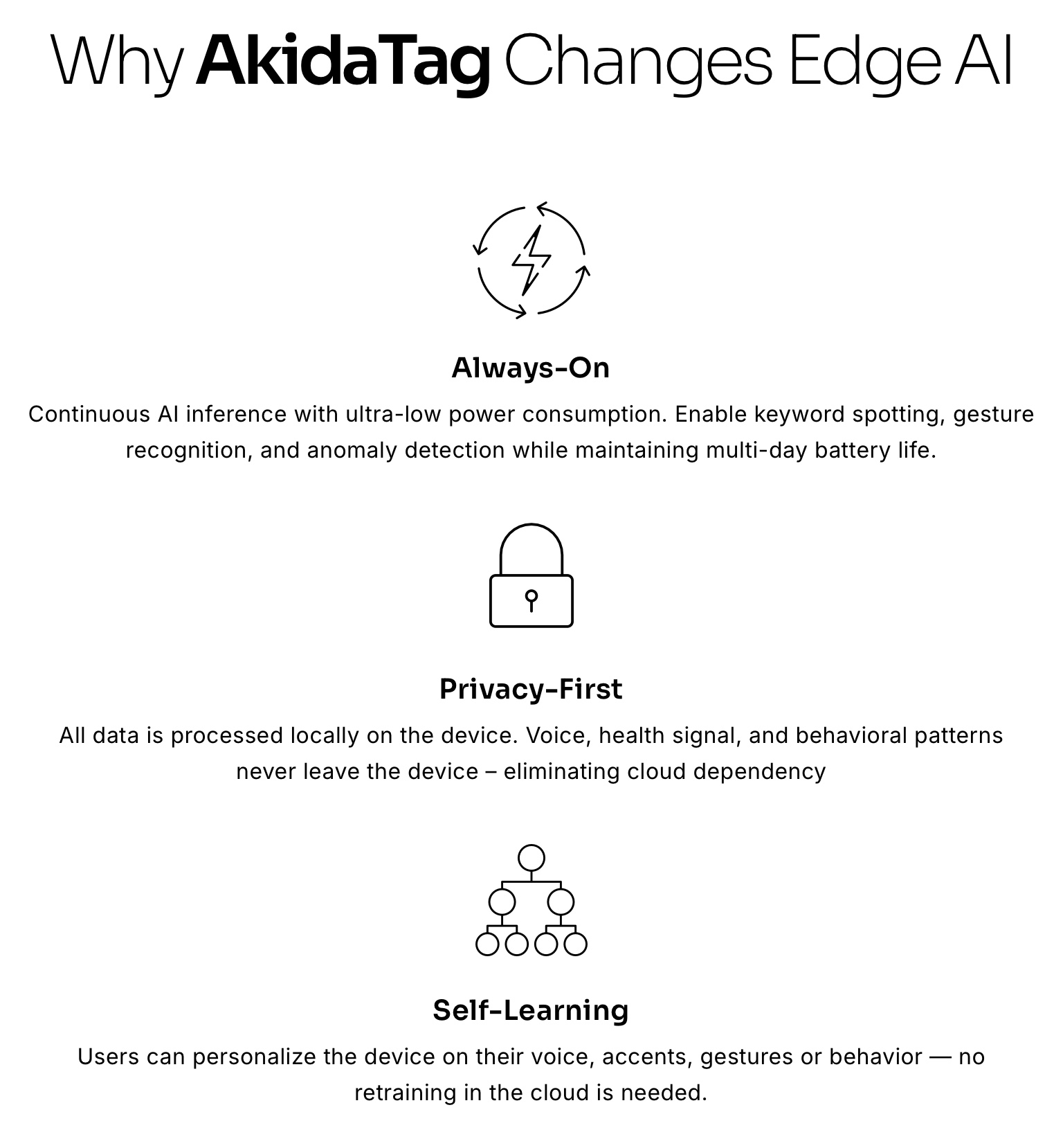 Why AkidaTag Changes Edge AI Always-On Continuous AI inference with ultra-low power consumption. Enable keyword spotting, gesture recognition, and anomaly detection while maintaining multi-day battery life. Privacy-First All data is processed locally on thebrainchip.com
