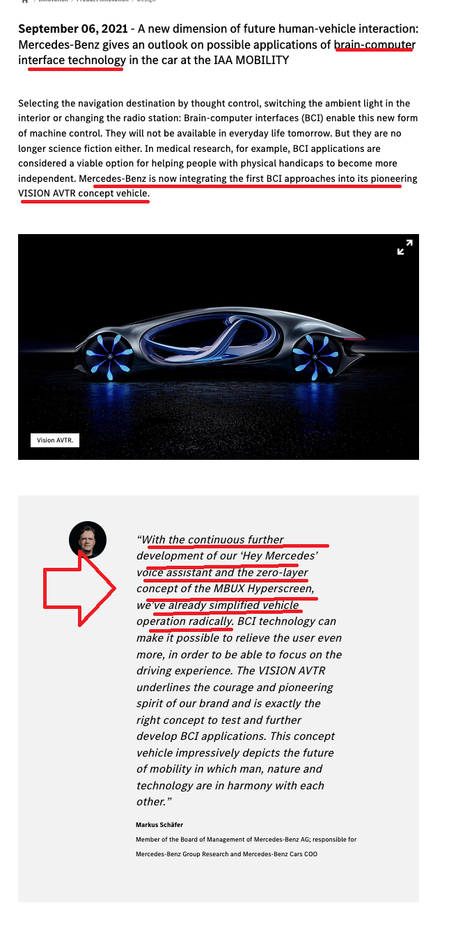 Is it merely a coincidence that the "Hey Mercedes" voice assistant technology is discussed in tandem with the introduction of the first BCI application in the Mercedes VISION AVTR concept vehicle, or are we involved in this to? I know what my dreams were indicating...