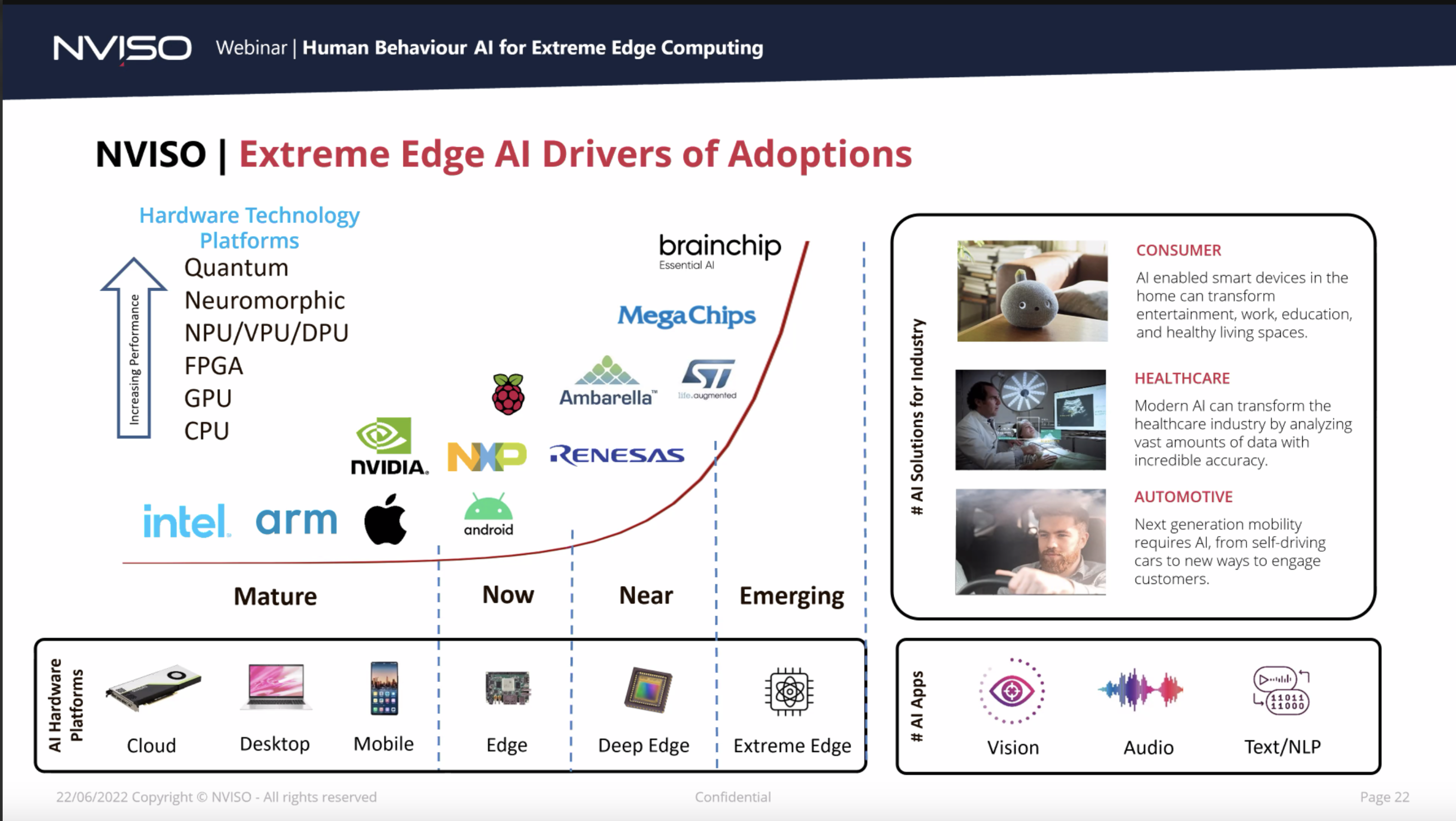 Great preso from Nviso. Biggest take away for me was during the Q&A. Nviso are software. Brainchip are hardware. You can‘t pitch to the major auto companies and/or OEM’s to put these products on the market without both software and hardware running on commercially available products. Nviso got to that point within months (not years like I was first thinking) by just adding Akida into the mix. Makes you think about how many other products are literally sitting on the verge of commercialisation that could get across the line very quickly by combining with Akida.