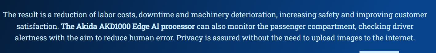 While it's clear Mercedes are looking at using Akida in cars, I think it's worth considering their other (potential future) product lines. Anything electric like drones should get large power savings from Akida.