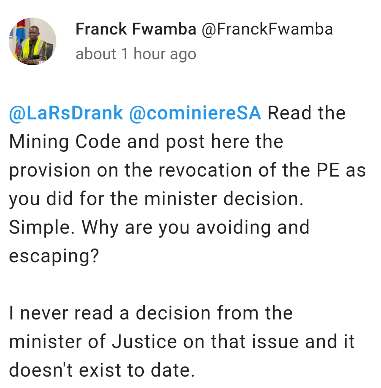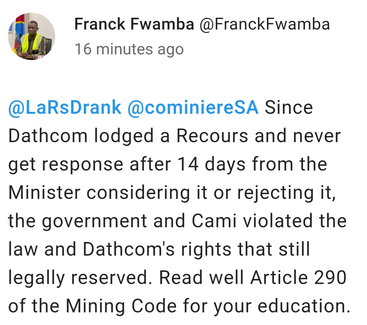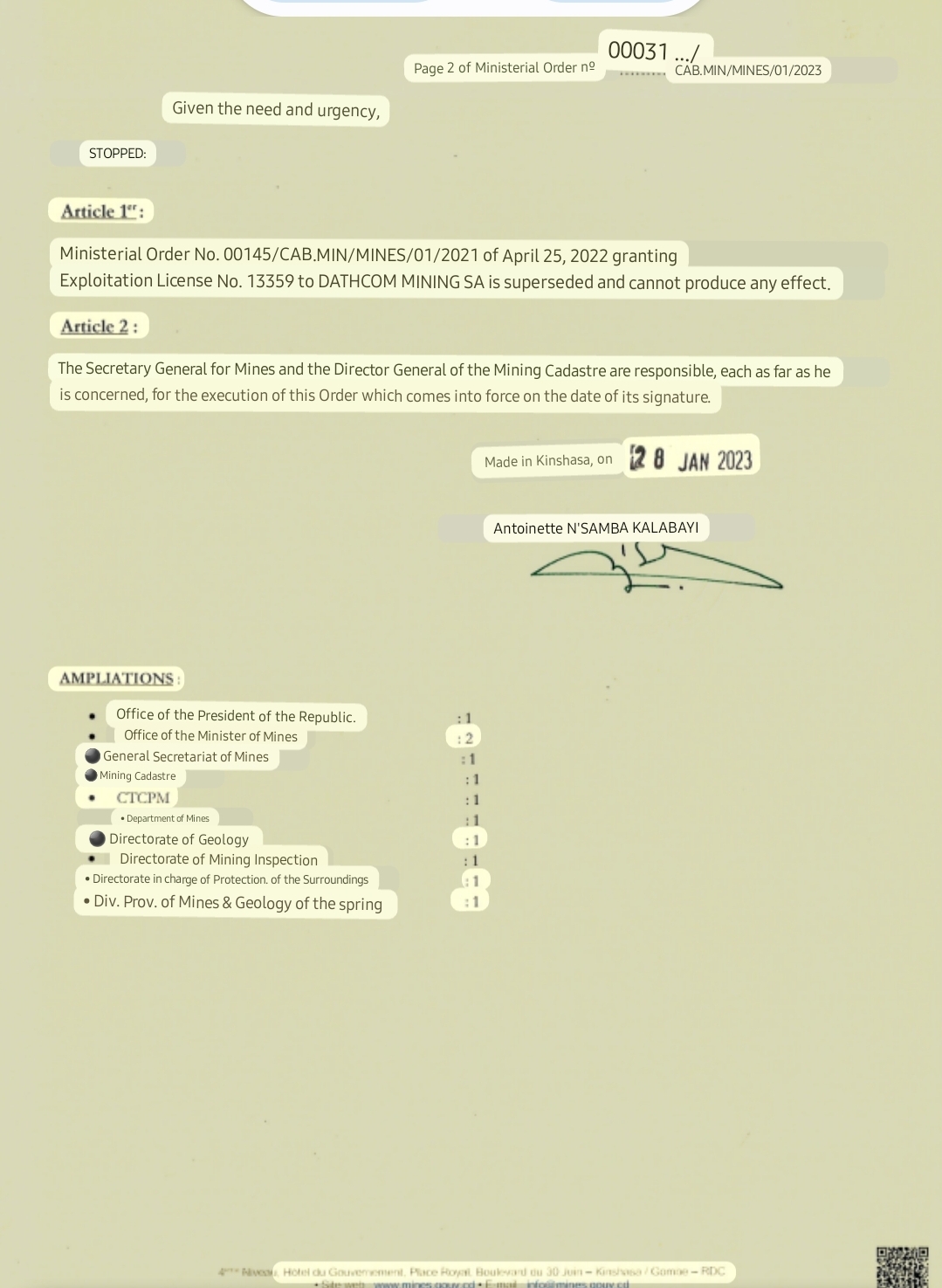 Waiting for DRC morning to see if we can get a copy and add it to my file for ICSID, clear fucking violations top to bottom.New decree imminent imo