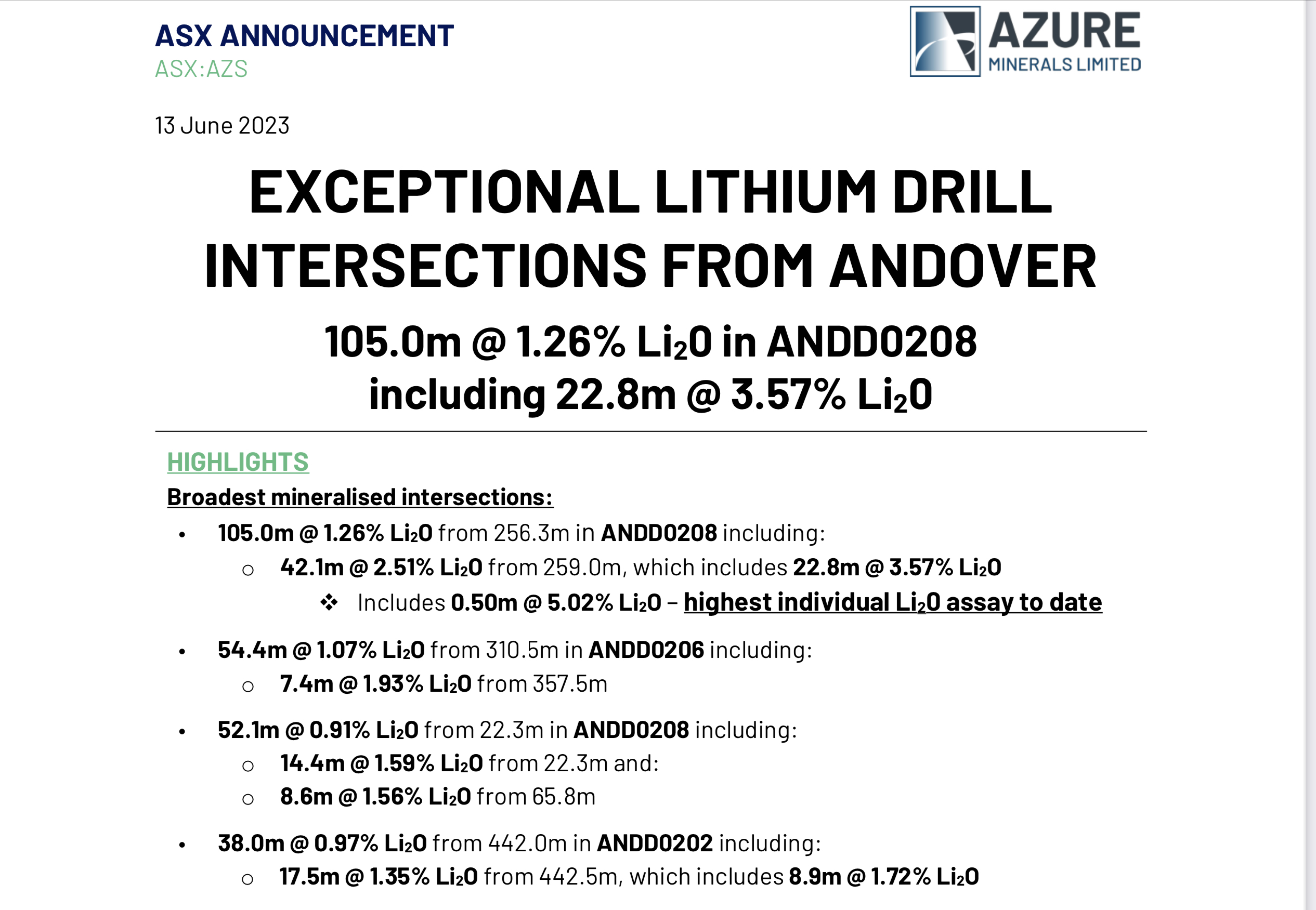 I‘m going to get into AZS shortly. SQM threw $20mill at them after their Geologists explored the outcropping pegs by chopper for a few days.