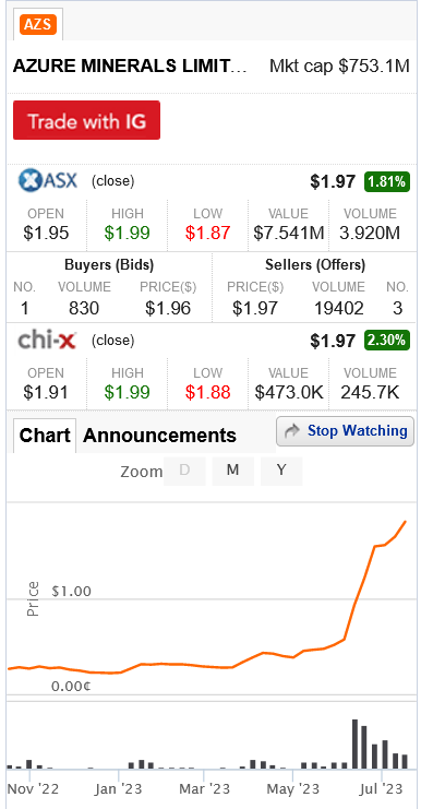 He has done extremely well getting into AZS around the 30c mark with a very substantial holding, and when the SP hit 60c from memory last Friday, he disclosed that he was 100% up and had just sold 50% of his holdings to free carry, which is his in line with his investing strategy. The poor bugger sold the last trading day before the drilling announcement which was the start of last weeks big run. I feel bad for him as it has cost him big time, although no doubt being stringent in his trading strategy has worked very well for him. He goes hard early with conviction then de-risk. Would have worked well on AVZ wouldn’t it
