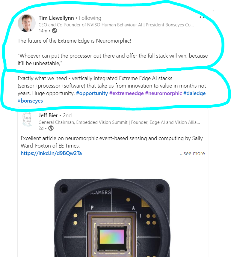 I should mention here for newer shareholders that the founder of Prophesee and Peter van der Made had a little bit of social media admiration feast going on probably about 2019 discovered by others then it went quiet.