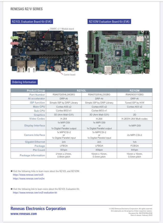 RZ/G2UL, allowing for easy reuse of proven designs. The RZ/Five also comes in a smaller, compact package to address less complex designs more efficiently. As an evaluation environment, an