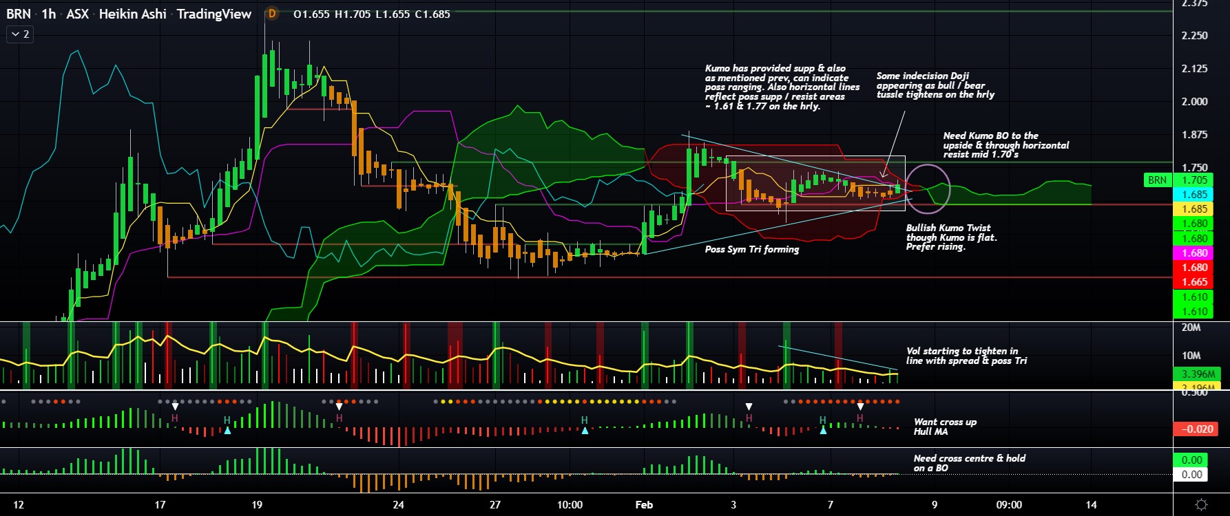 What an interesting start to the day on ASX after Wall St copped a clobbering last night, so very pleassed to see BRN so well in the green,
