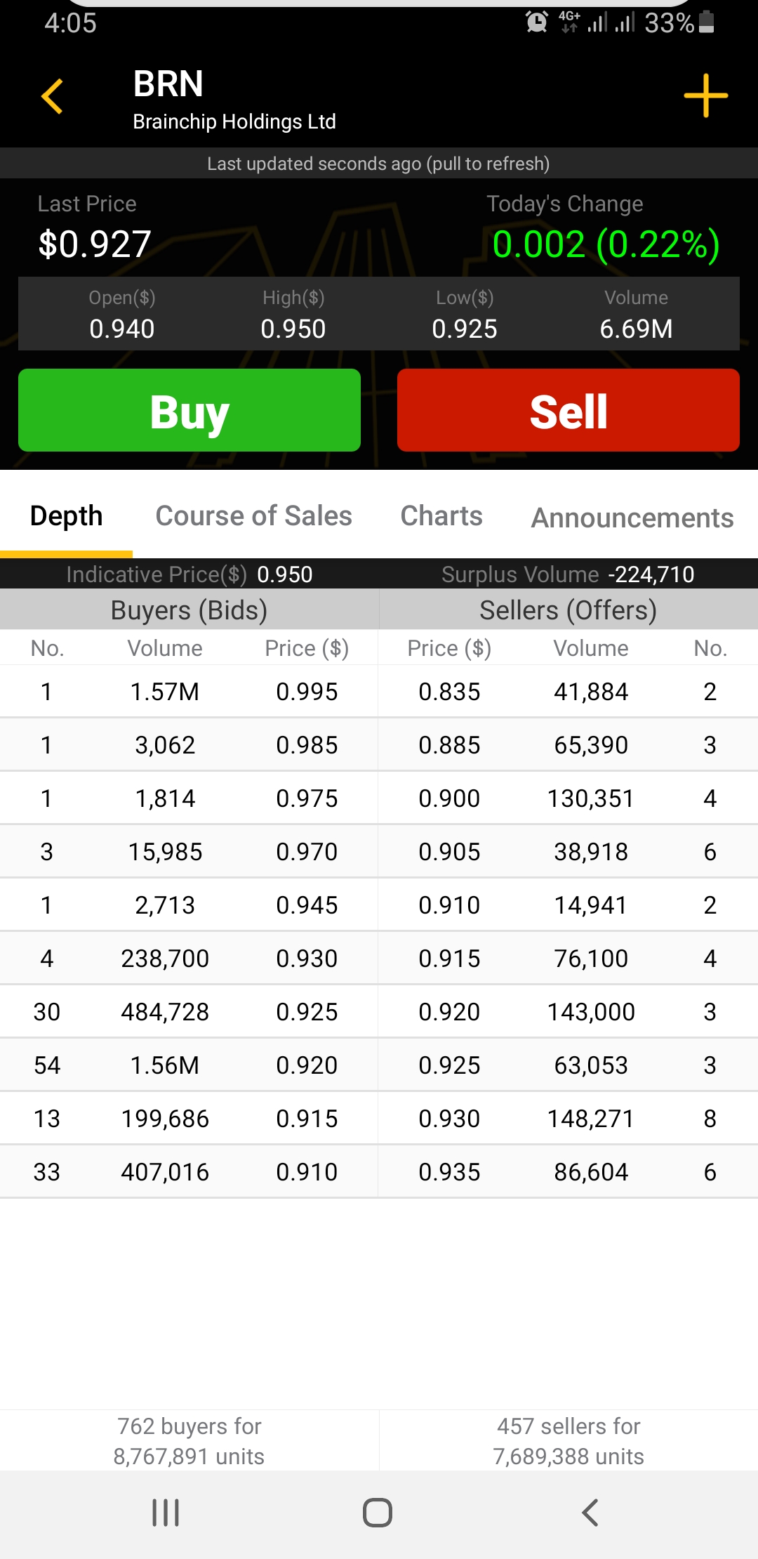 5. Tries to indicate ~ buy / sell within each bar & whilst seeing selling the shares appear to be getting absorbed hence the ranging.
