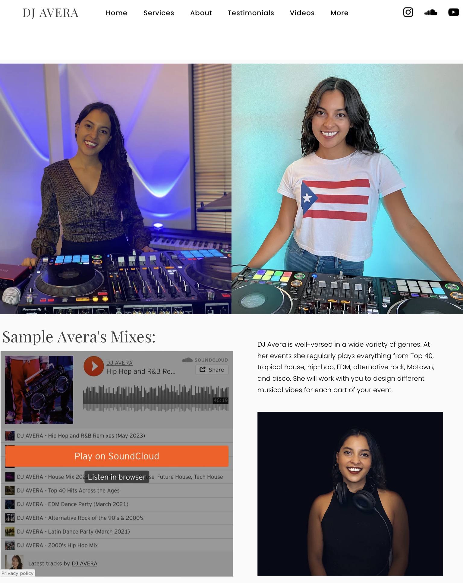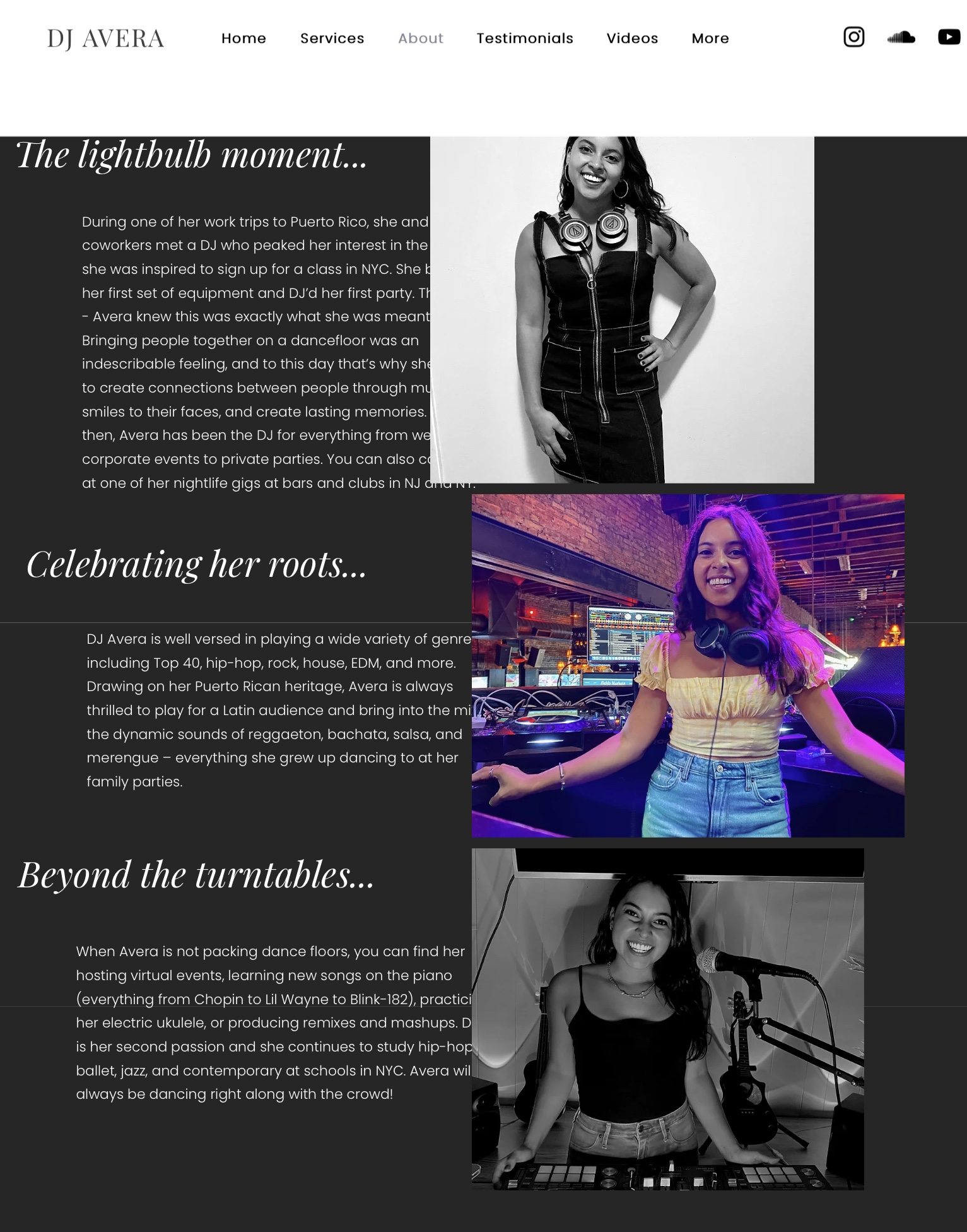 Avera is an open-format DJ based in NYC. She brings her clients' visions to life by providing an exciting and high-energy musical experience that's specifically tailored to each event. Whether the event is an intimate affair or an epic blowout,www.averamusic.com