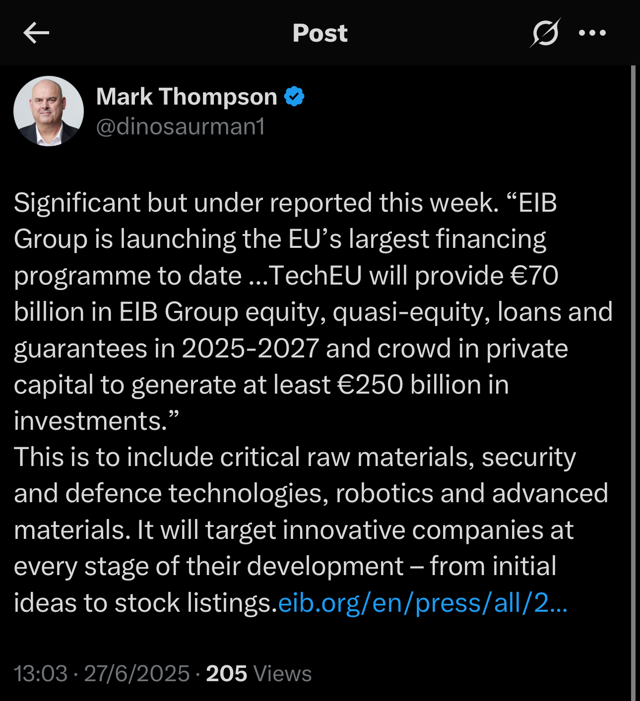 @Semmel this is why I'm expecting FID won't come soon. Also the EU just passed legislation this week allowing state aid for green Net Zero Industry projects. Ebba Busch was also talking up spending of 3.5% of GDP on military, and an additional 1.5% on military support (I'm reading it as things like battery materials for example).