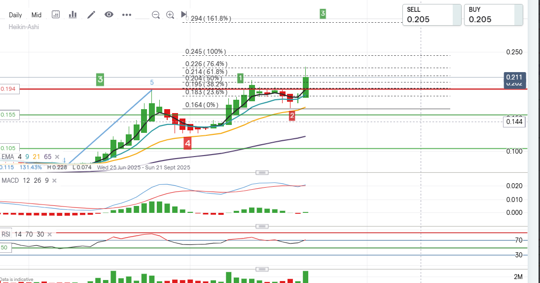 Great trading opportunity for anyone into silver. I have made a few bags on this ripper, probably the best silver play on the ASX currently, WCE ( formally ERW ) picked up a existing silver mine which shut down decades ago when silver spot was shit. Silver is now one of the hottest commodities going around now and WCE have started drilling to improve reserves with the long aim of eventually restarting the mine. So far the grade and hits have been phenomenal, with another bunch of assays pending soonish. So looking at the chart, we are looking at early stage sub wave 5 up, small correction in play imo, looks like a cup and handle play with the handle taking shape, SP could go as low as 16/15c, before continuation, if assays are as good as the ones prior, then i have a 1.618 fib target of 38c which would complete the 5 wave series.