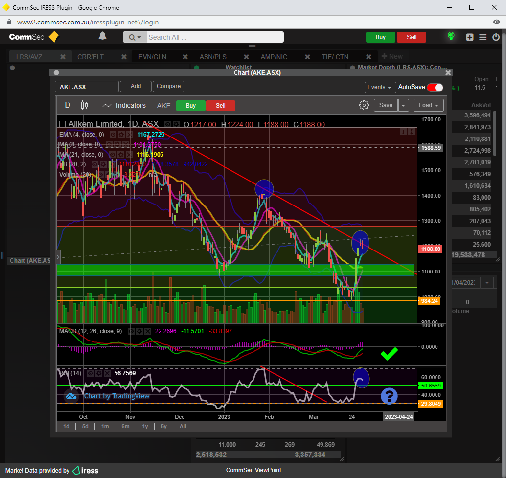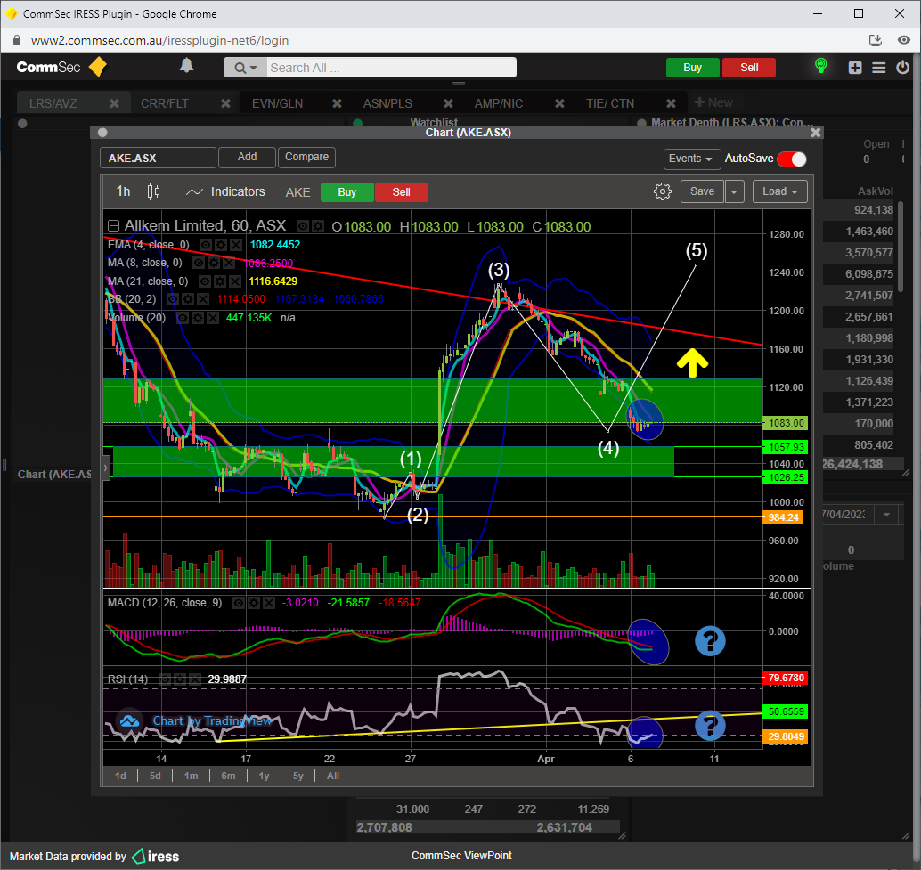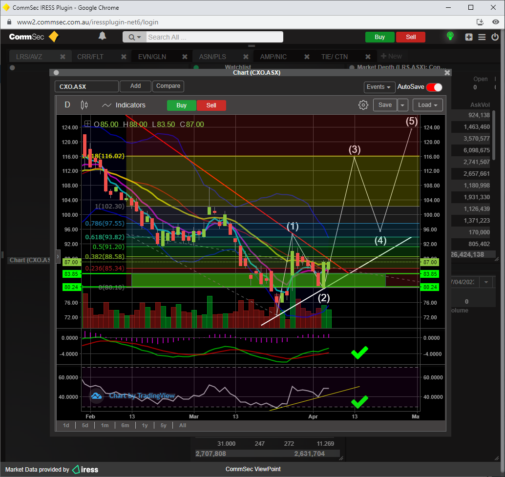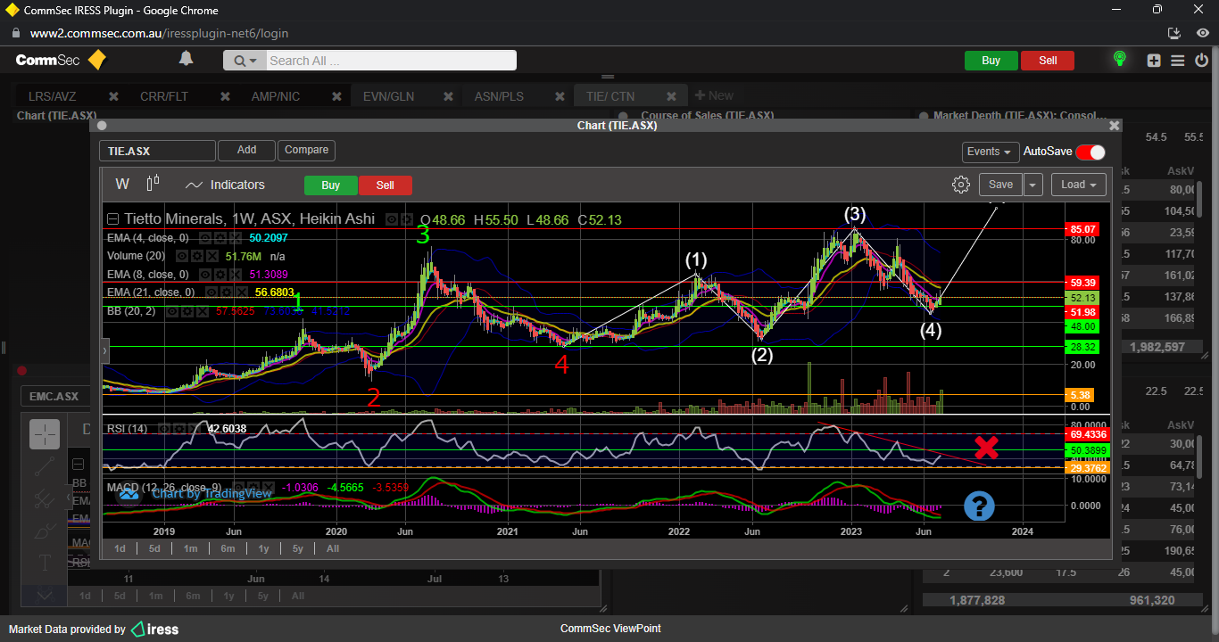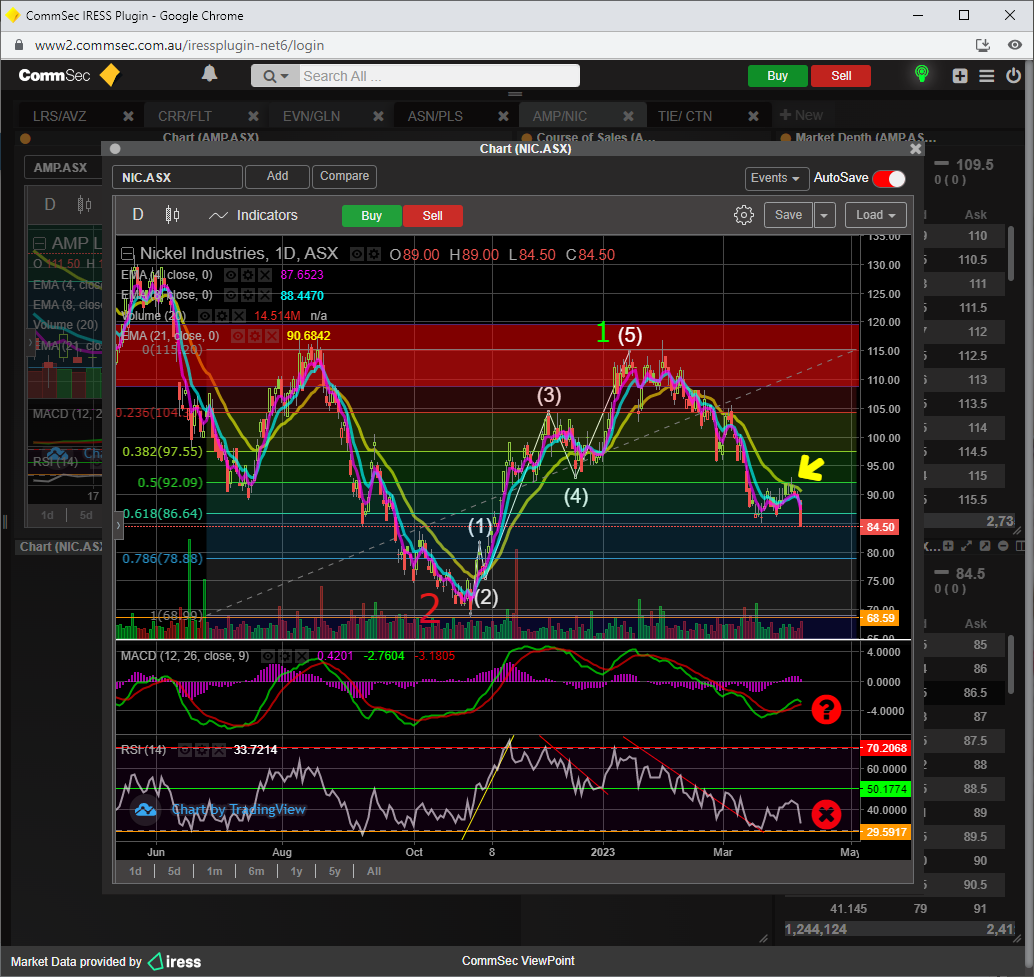 To confirm minor wave 3 up, a break of the 23 fib resistance ( 12.17 ) would be required, which would also result in the SP breaching the 21 ema too............then its a BUY.