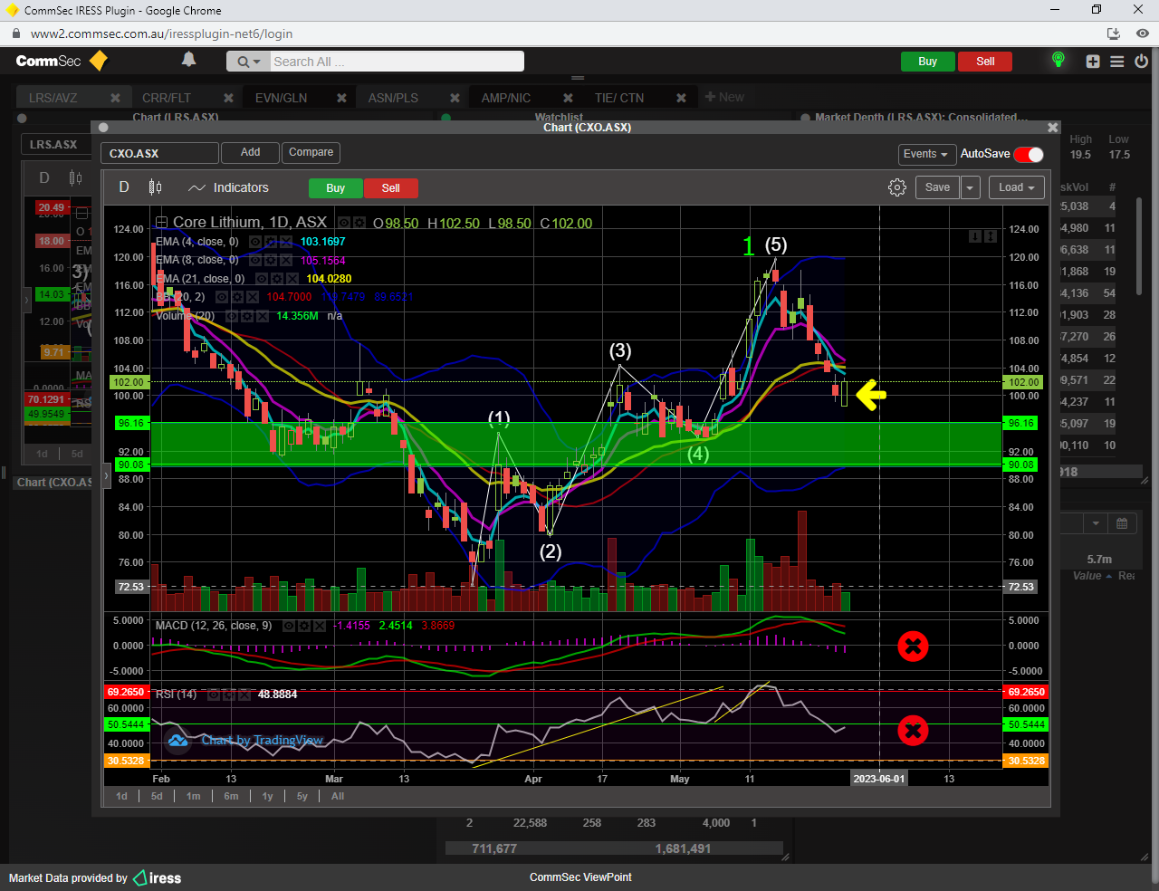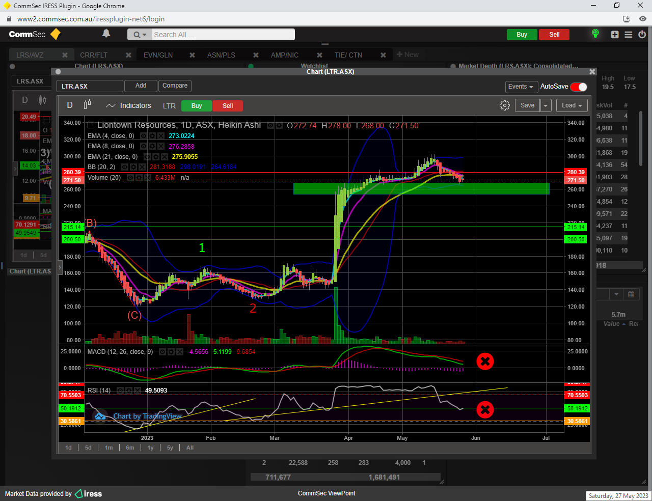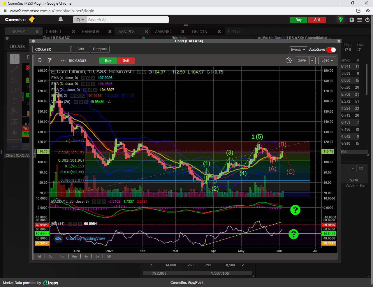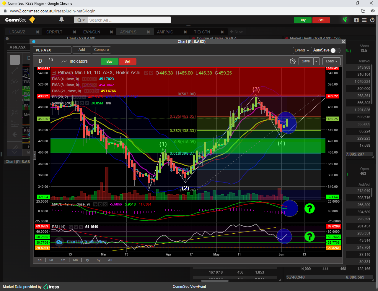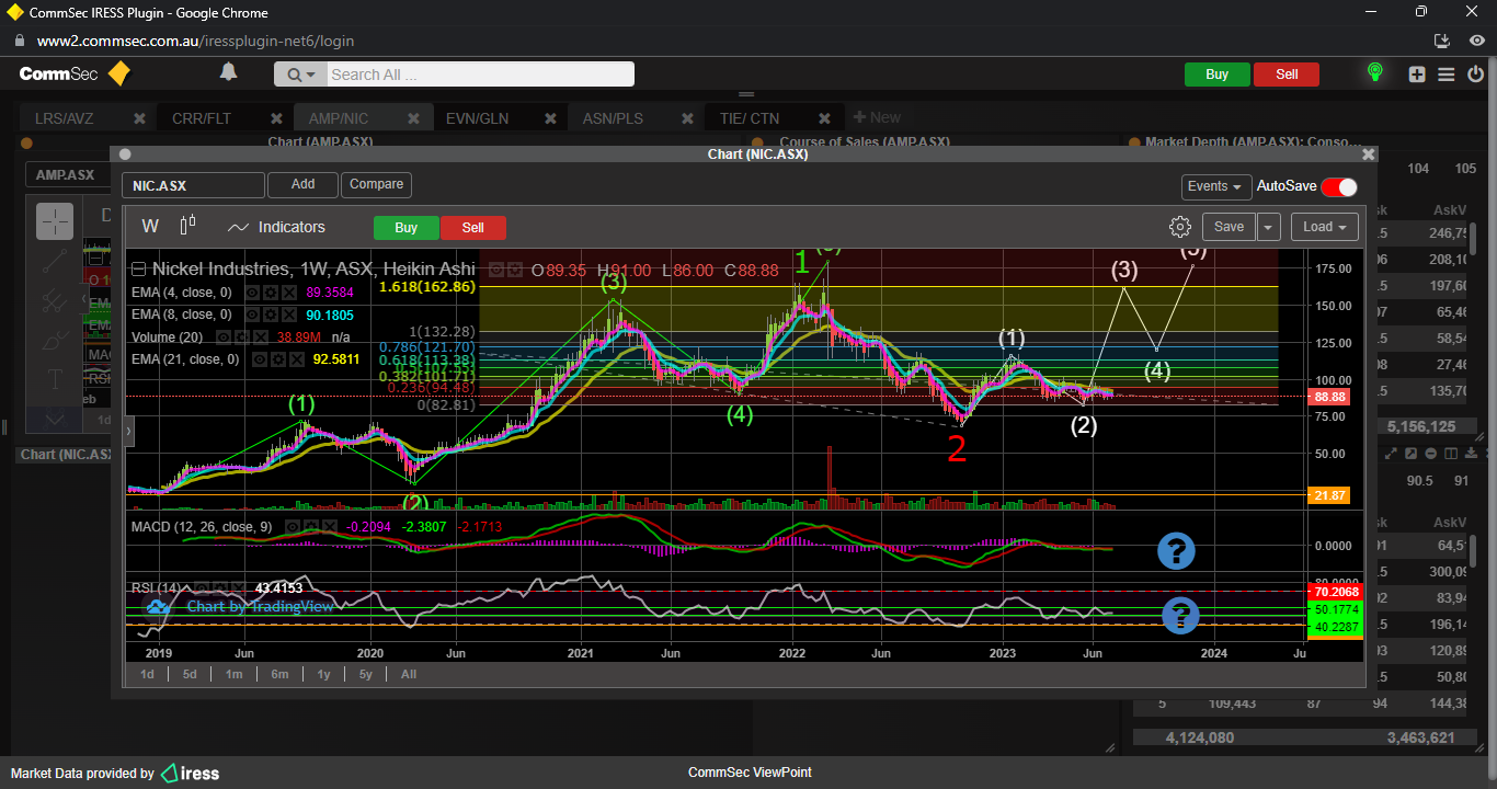 To confirm minor wave 3 up, a break of the 23 fib resistance ( 12.17 ) would be required, which would also result in the SP breaching the 21 ema too............then its a BUY.