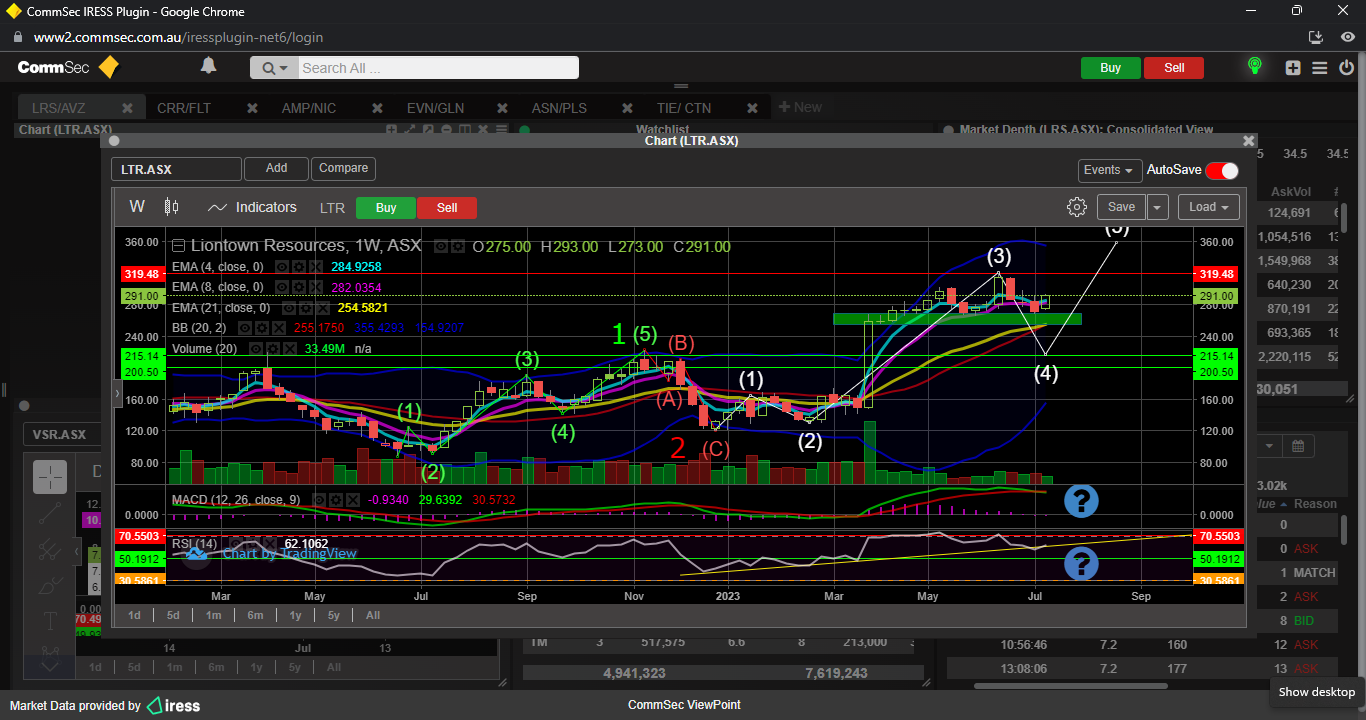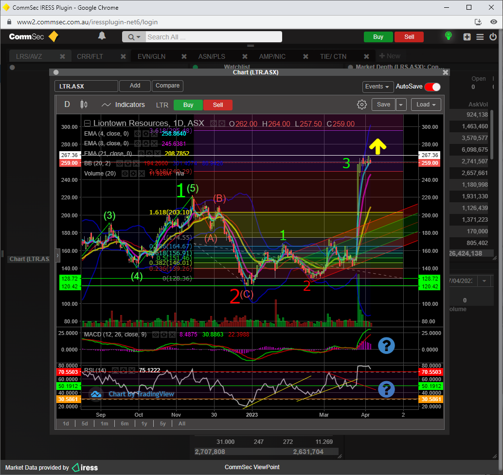 LTR went completely nuts on Friday, massive volume creating a beautiful bullish engulfing candle ( yellow arrow ), minor sub wave 3 up is definitely on right now, with all indicators bullish.