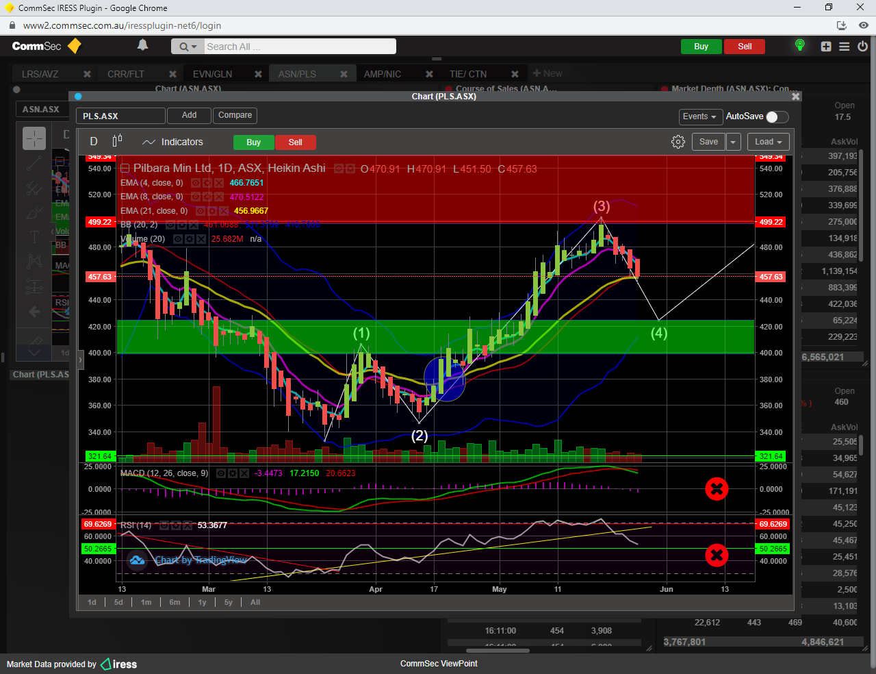 Last week i called a BUY on PLS ( red arrow ), based on increased volume, SP above the 4 , 8 & 21 ema, but it ended up being a complete fake out unfortunately.
