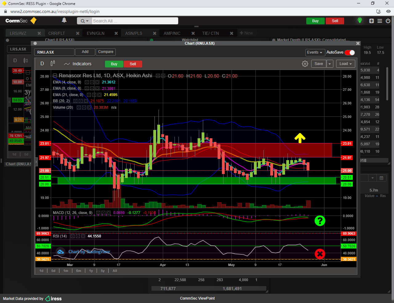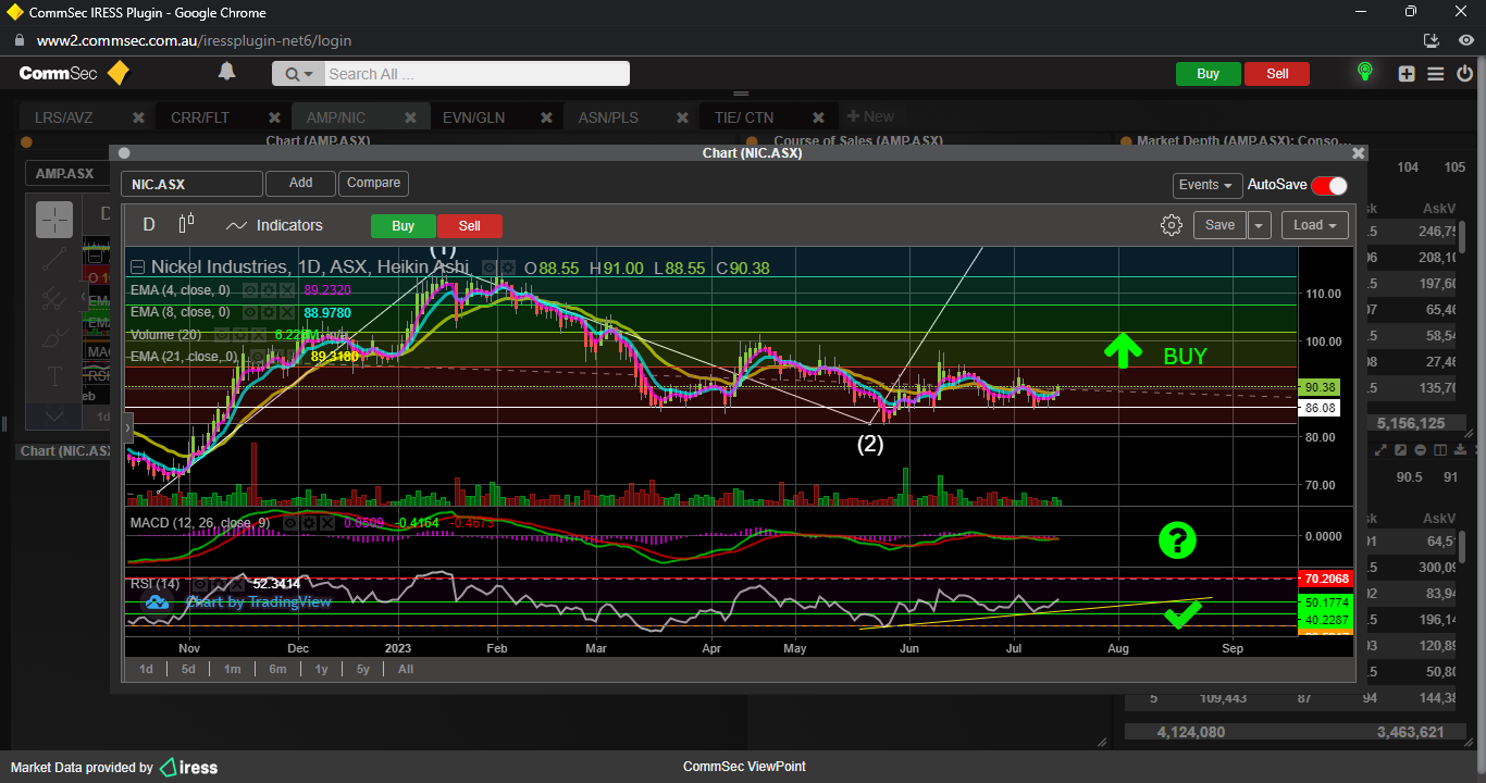 I certainly aint going to be suggesting a BUY here yet, need to see SP break 50 fib resistance and get above the 21 ema once again, need to also see the green line converge and get past the red signal line on the MACD plus see RSI 14 create a positive trend up.